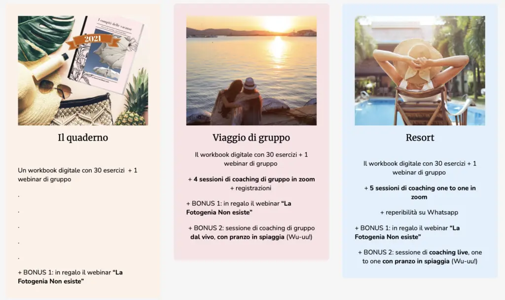 - la versione Vacanze di Gruppo (sessioni di coaching di gruppo)